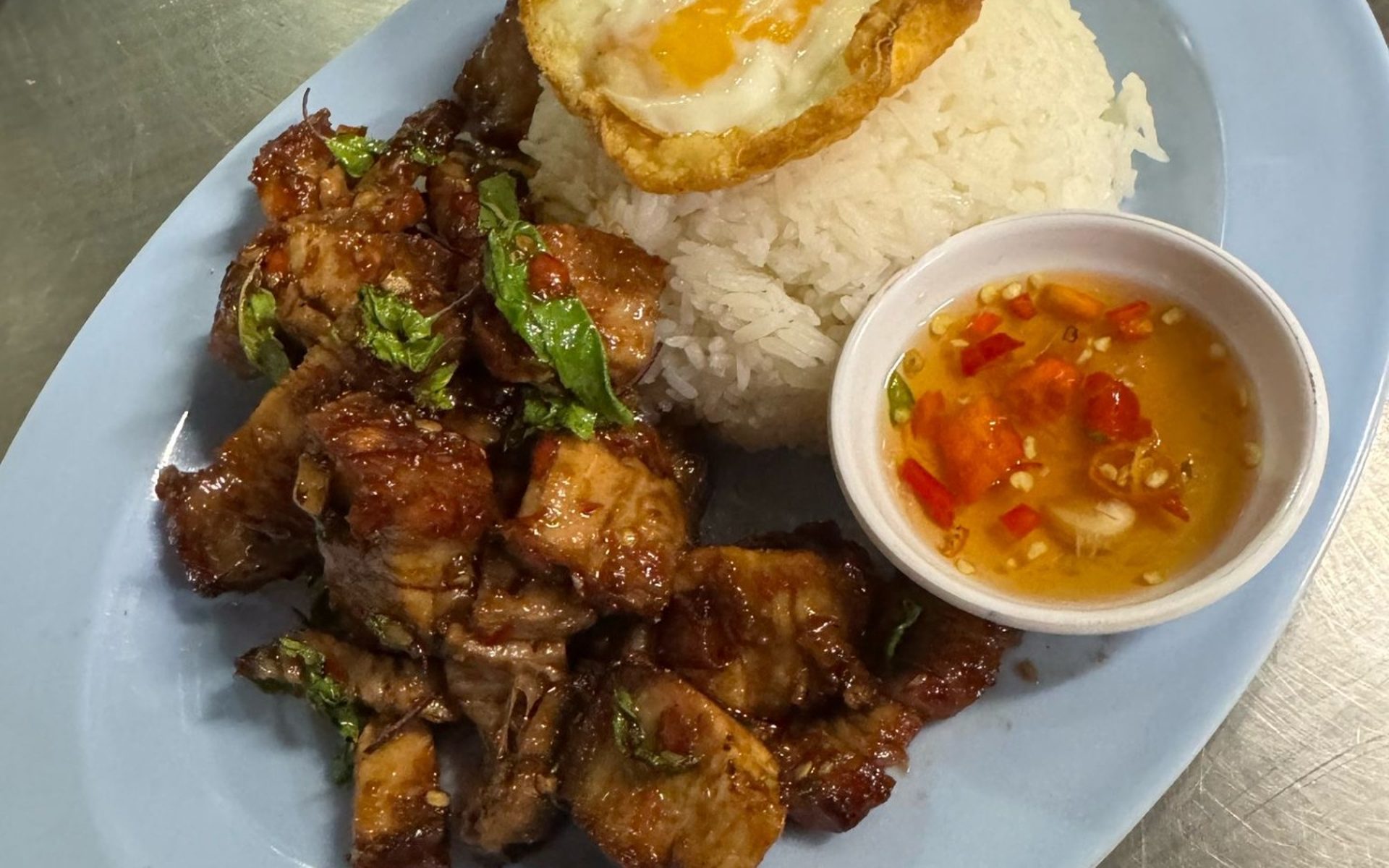 Authentic Thai street food in the area. Nice atmosphere with Thai music. Best Thai-style crispy pork in town. All Som-Tum dishes (Papaya salad) are super juicy. The raw blue crab salad is lit.